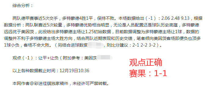 解读分析特点简介:每日的比赛众多,从中选其3-5场所擅长的联赛,常言道,水无常形,数据无定式,即便数据同历史比赛相像,但有时结果完全不同,这就要考究观察静态基本面和追踪动态基本面,正所谓工欲善其事必先利其器,把这些基本面吃透,通过基本面看出比赛双方的实力定位和后期数据倾斜方向,根据数据的变化过程,直至数据的稳定,更好的找到让方和受让方的拉力,这样比赛结果的朝向才能更加准确。