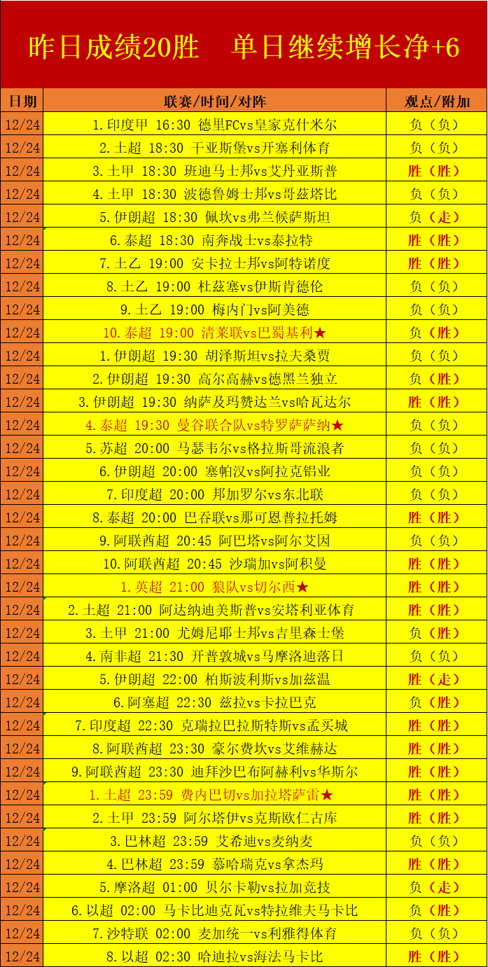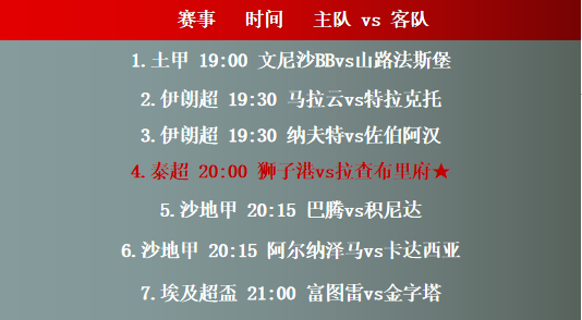 赛事前瞻:本文提供12月25日19时00分-21时00分时段的7场足球赛事走势分析表,当中包括土甲、伊朗超、泰超、沙地甲等赛事提供分析参考,具备较高的参考价值。主要关注赛程如下: