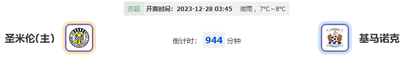 北京时间12月28日03时45分,苏超2023-2024赛季第20轮比赛,圣米伦vs基马诺克,主队现时遭遇新败士气还是无法稳定回升,本次主场迎战一同在上游竞争的基马诺克,能否顺利捍卫主场重新抢分抢胜?让我们拭目以待!