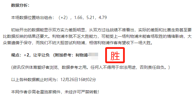 (温馨提示:观点回顾为已完场赛事的统计,并不能代表未来的观点预测结果走势,观点仅为其个人意见,与平.台无关。资讯仅供体育爱好者浏览,并不构成购.彩建议,任何人不得用于非法用途,请广大用户理性消费。)