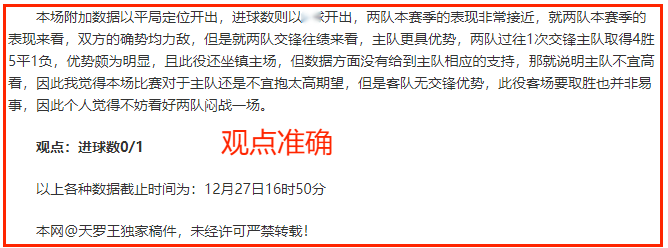 (温馨提示:观点回顾为已完场赛事的统计,并不能代表未来的观点预测结果走势,观点仅为其个人意见,与平.台无关。资讯仅供体育爱好者浏览,并不构成购.彩建议,任何人不得用于非法用途,请广大用户理性消费。)