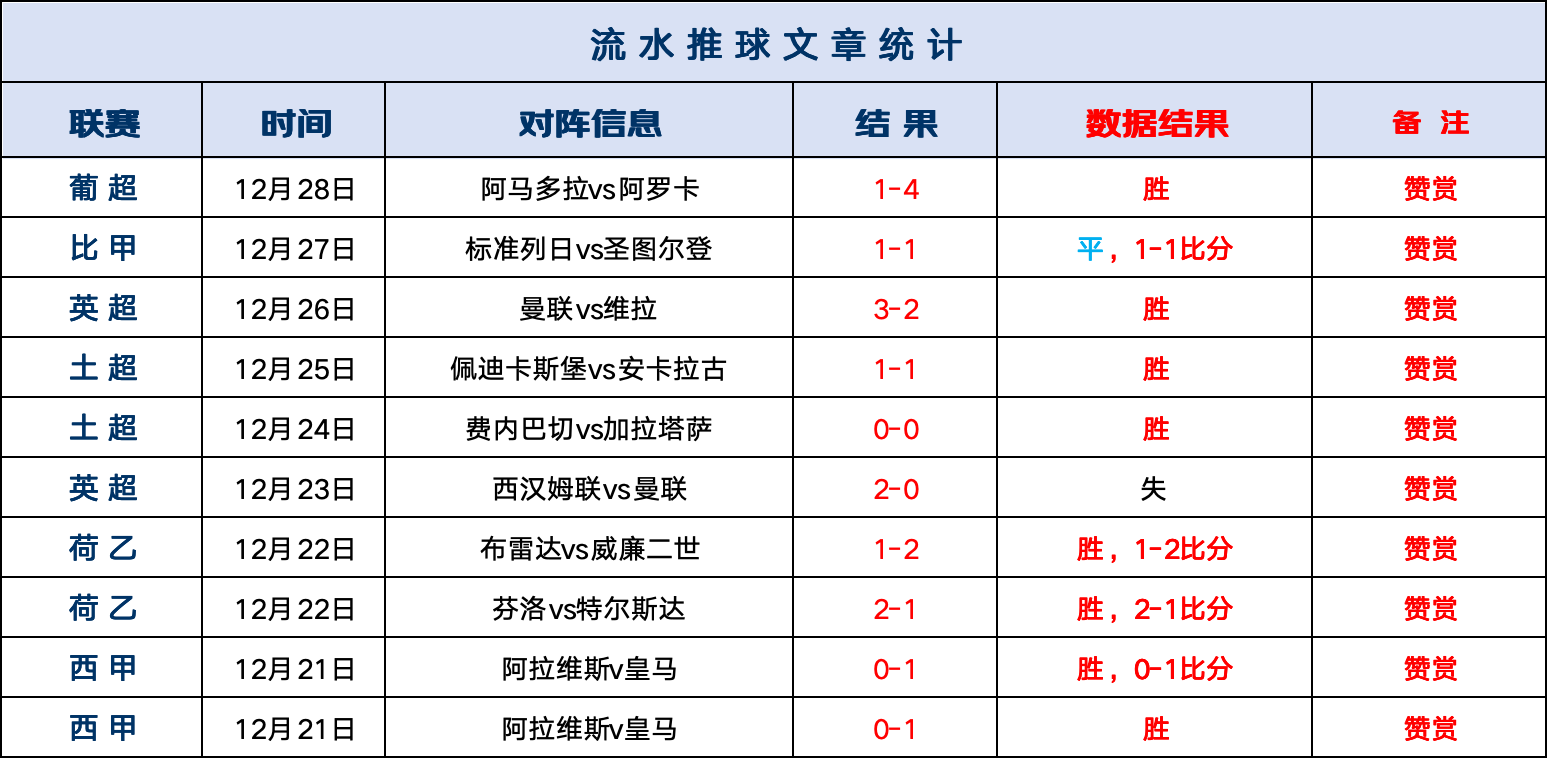 【日韩教主】独家日韩比赛一手资讯,完善的比赛模型库,解读精准独到!赞赏回顾:流水赞赏强势打出,阿马多拉1-4阿罗卡,早场精选也是墨尔本城打出8-1的罕见比分。流水赞赏曾连续6周周榜第一,更是有156天总体正确率近7成(不含走)的长期稳定发挥,今天继续一起采摘果实!!!