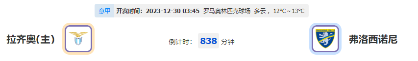 北京时间12月30日03时45分,意甲联赛2023-2024赛季第18轮比赛,拉齐奥vs弗洛西诺尼,主队现时迎来胜绩士气得到不少的提升,本次主场迎战保级球队之一的拉齐奥,能否顺利捍卫主场继续抢分抢胜?让我们拭目以待!