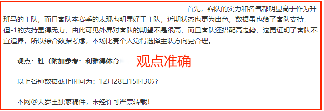 (温馨提示:观点回顾为已完场赛事的统计,并不能代表未来的观点预测结果走势,观点仅为其个人意见,与平.台无关。资讯仅供体育爱好者浏览,并不构成购.彩建议,任何人不得用于非法用途,请广大用户理性消费。)