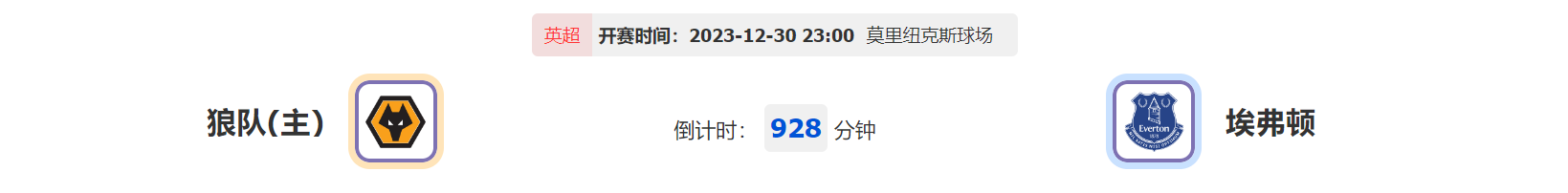 埃弗顿方面连续吃了2场败仗,上场比赛球队领先情况下被曼城逆转,而之前的比赛球队客场1-2不敌热刺。其实埃弗顿这两场比赛的败仗同该队的中场防守问题息息相关,由于中场两名后腰球员杜库雷以及盖伊的受伤,埃弗顿的中场拦截能力受到较大影响。目前这两位球员的伤情恢复情况并不明朗,本场做客狼队,球队前景不妙。