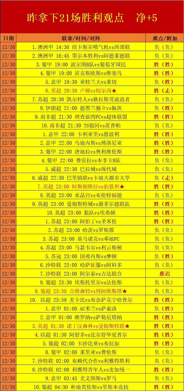 昨天已完成的4个板块赛程拿下21场胜利观点分享,在进入关键冲刺的收官赛程里重新进入正向的增长轨道,单日收获+5的优质增长。12月已完成的30日赛程合计拿下510场胜利观点分享,净增进度+84,与过去的优秀11月进程处于一个持平阶段,本日是2023赛年的真正收官赛程日,同时也是笔者12月下旬计划的终结收官赛程,精选值得关注的焦点赛事,迈向更高冲刺峰值出发!
