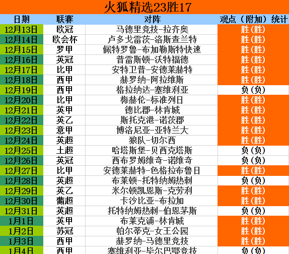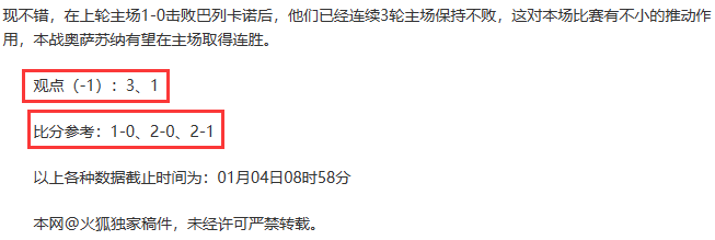 昨天火狐文章送出的西甲赛事,奥萨苏纳主场1-0击败阿梅里亚,观点和比分参考全部顺利打出!只是精选方面,塞维利亚主场不敌毕尔巴鄂竞技,精选近23胜17。全新的2024年,小女子希望小伙伴们忙而有度,闲而有趣,在平淡琐碎的日子里,用自己喜欢的方式取悦自己。今天别忘了继续关注火狐的动态哦!