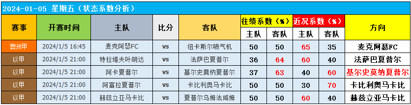 以下是今日5比赛的以上几项数据分析,以及参考方向!