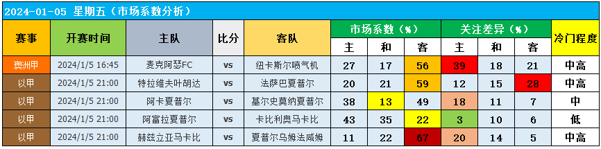 注:市场数据与关注差异均有出现深色标记的选项为大概率出现冷门!