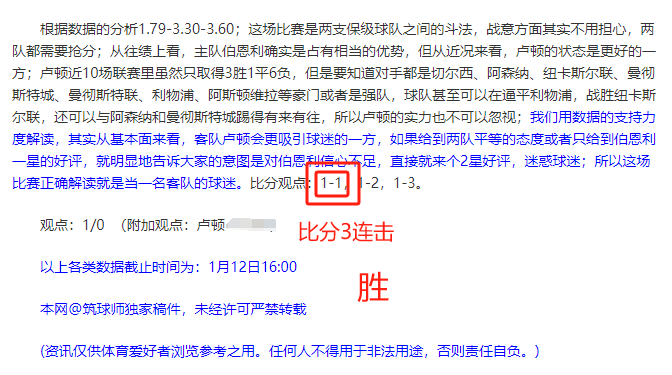 (温馨提示:观点回顾为已完场赛事的统计,并不能代表未来的观点预测结果走势,观点仅为其个人意见,与平.台无关。资讯仅供体育爱好者浏览,并不构成购.彩建议,任何人不得用于非法用途,请广大用户理性消费。)