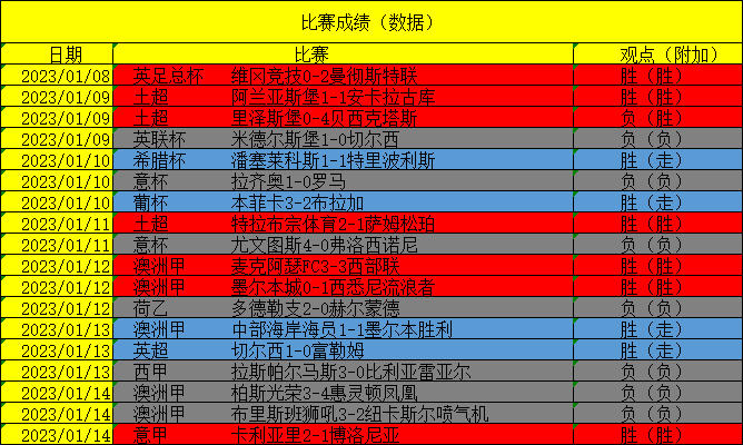 (温馨提示:观点回顾为已完场赛事的统计,并不能代表未来的观点预测结果走势,观点仅为其个人意见,与平.台无关。资讯仅供体育爱好者浏览,并不构成购.彩建议,任何人不得用于非法用途,请广大用户理性消费。)