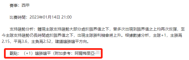【解鎖內容為以上賽事支持趨勢預測圖展示,以及根據分析預測圖進行相對低機率方向觀點判斷。解鎖內容僅代表個人知識領域觀點,與本網站無關】