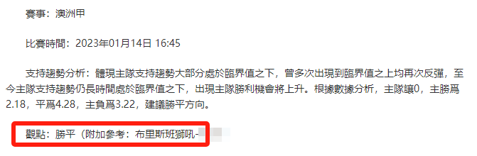 【解鎖內容為以上賽事支持趨勢預測圖展示,以及根據分析預測圖進行相對低機率方向觀點判斷。解鎖內容僅代表個人知識領域觀點,與本網站無關】
