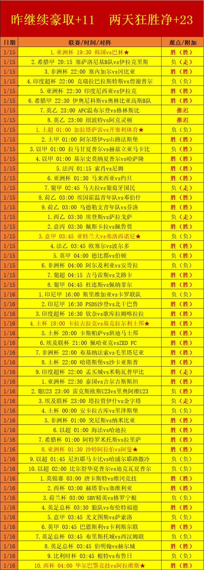 昨天继续飙升,拿下19场优秀胜利观点,单日再献净+11疯狂增长!周中2天时间狂+23,中旬计划火热冲击峰值!截至到目前为止,1月赛程合计拿下238场胜利观点并从中转化出优质的净+50增长,笔者的第11个优秀旬计划奠定了坚实的基础,中旬接下来的4天时间迈向更高峰值冲刺!