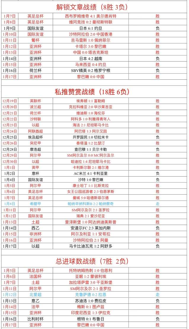 周三解锁文章1场,黎巴嫩稳稳胜利,解锁文章近8胜3负,状态很稳定!私推总进球数1场完美全胜拿下,总进球数近7胜2负!私推赞赏1场没有打出,赞赏近18胜6负,状态依然出色!