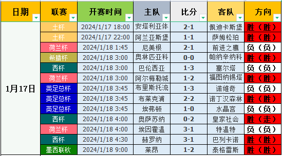 昨天数据表现出色,除去推迟的比赛外,剩余的12胜有7场打出,净增+2!昨天数据中,早场的土杯表现出色,2场都完美的打出,非常的给力!而荷兰杯则是未能打出,比较可惜!不过希腊杯顺利打出,非常的不错!晚场的表现一般,其中荷兰杯完美的打出,非常的给力!英足总的表现一般!夜场的表现出色,其中西杯2场都顺利打出,非常的精彩!而墨西联的表现继续让人满意,进球数又是完美的大获全胜拿下!