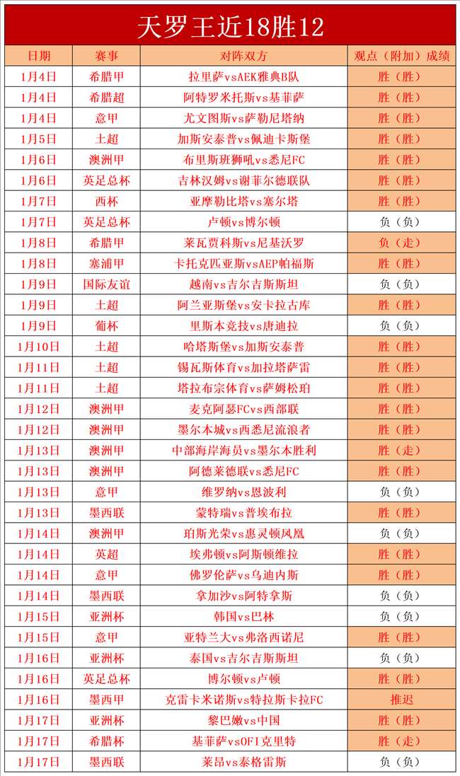 我是天罗王,从事体育媒体相关工作已有20余年,有着多年丰富的实战经验,专研心理学,概率学,读心术多年,以理性与逆向思维相结合的概念为导向,做到精准结果判断。