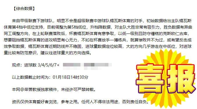 荣誉教授:资深足球运动员,司职前锋,涉及足球领域二十余年,擅长结合数据与球赛动态分析动向,以自身实战经验,球赛性质,球队及球员新动态情报进行全方面精准解读,有多年各项赛事观看,总结,分析经验,精准预判结果,做到实事求是。
