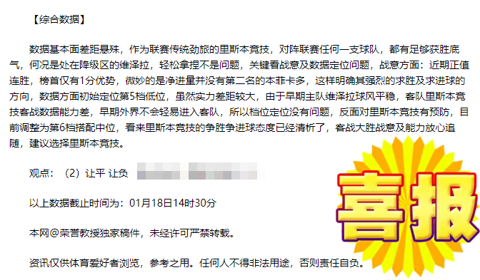 (温馨提示:观点回顾为已完场赛事的统计,并不能代表未来的观点预测结果走势,观点仅为其个人意见,与平.台无关。资讯仅供体育爱好者浏览,并不构成购.彩建议,任何人不得用于非法用途,请广大用户理性消费。)