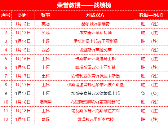 近12场胜11场,胜率91.7%,非常清晰稳定可靠。