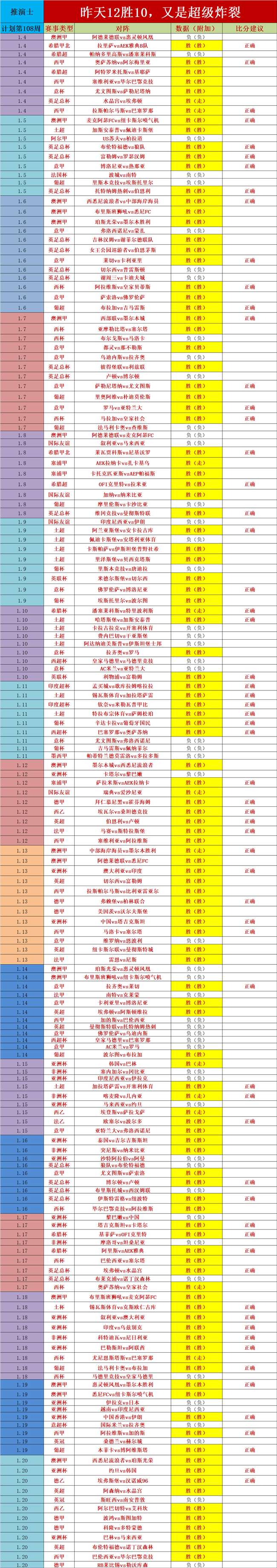 1、推演士计划第109周(走不纳入统计)昨天状态又是超级炸裂,拿下12胜10的佳绩,并且击中了2场比分,炸裂状态势不可挡,昨天的澳洲甲继续大获全胜,澳洲甲已经连续3天大获全胜,炸裂状态从4号至今已经保持了17天,近期无论是杯赛,联赛尽在笔者的掌握之中。