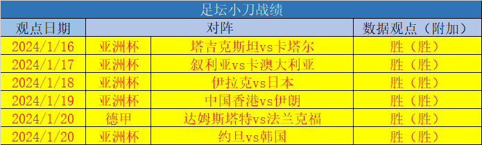 战绩回顾:6连胜太牛了!昨天亚杯约旦+德甲达姆斯塔特全部打出!两场比赛全部在预测之内!目前小刀走势已经来到6连胜!今晚向7连胜进发!敬请关注小刀新动态!