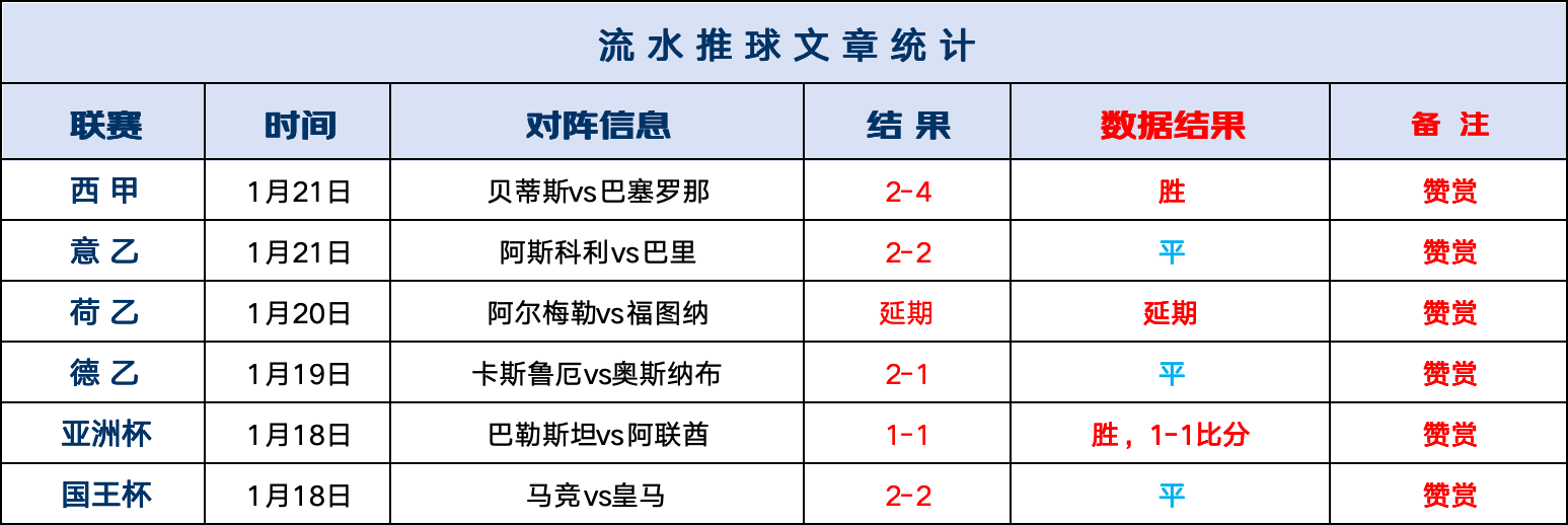 【日韩教主】独家日韩比赛一手资讯,完善的比赛模型库,解读精准独到!赞赏回顾:流水赞赏连战连捷,贝迪斯2-4巴萨,阿斯科利2-2巴里,方向跑出。流水赞赏曾连续6周周榜第一,更是有156天总体正确率近7成(不含走)的长期稳定发挥,今天继续一起采摘果实!!!