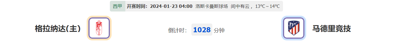 看点:格拉纳达上一场作客0-1不敌皇家贝蒂斯,此役主场作战状态能否好转?马德里竞技西杯赛事淘汰皇家马德里,此役作客能否延续西杯强势表现?