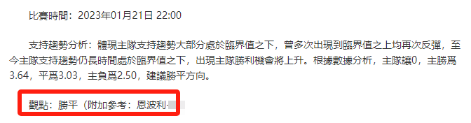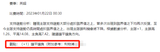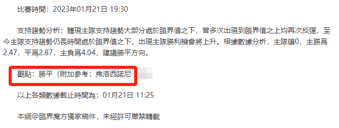 【解鎖內容為以上賽事支持趨勢預測圖展示,以及根據分析預測圖進行相對低機率方向觀點判斷。解鎖內容僅代表個人知識領域觀點,與本網站無關】