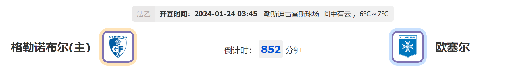 北京时间01月24日03:45,2023-2024 法国乙组联赛,格勒诺布尔vs欧塞尔,两队目前都是处于前三名位置,今天比赛哪一队更胜一筹?