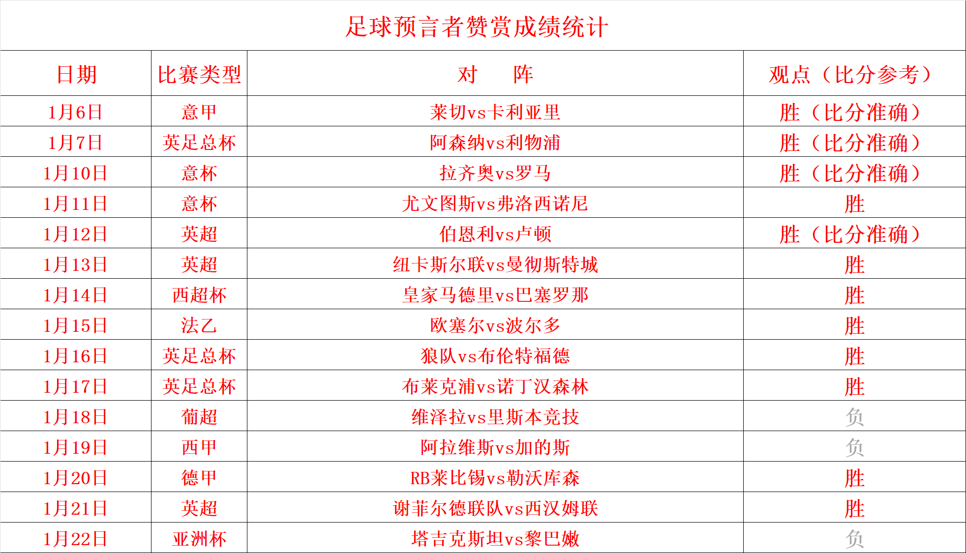 赞赏15胜12,昨天赞赏分享一场亚.洲杯的比赛,无缘取得连胜,但是熟悉足球预言者的粉丝们也知道,笔者只挑选有信心的比赛送给大家:长期稳定的发挥才是大家想要的结果,希望大家可以继续支持。
