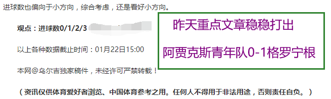(温馨提示:观点回顾为已完场赛事的统计,并不能代表未来的观点预测结果走势,观点仅为其个人意见,与平.台无关。资讯仅供体育爱好者浏览,并不构成购.彩建议,任何人不得用于非法用途,请广大用户理性消费。)