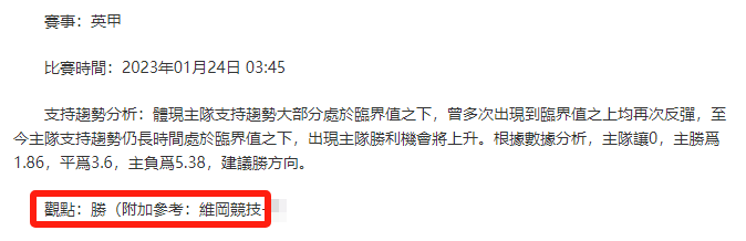 【解鎖內容為以上賽事支持趨勢預測圖展示,以及根據分析預測圖進行相對低機率方向觀點判斷。解鎖內容僅代表個人知識領域觀點,與本網站無關】