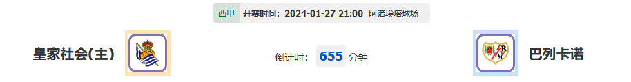 北京时间01月27日21:00,2023-2024 西班牙甲组联赛,皇家社会vs巴列卡诺,两队无论是排名还是近期状态都存在差距,今天比赛到底哪一队会更好一些?
