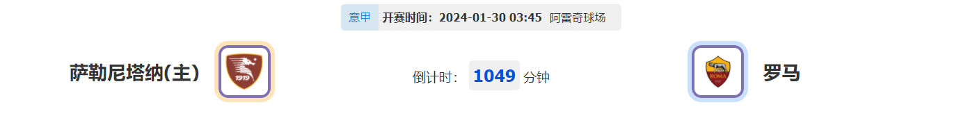 看点:萨勒尼塔纳近期遭遇3连败,此役主场作战能否止住颓势?罗马上一场主场2-1战胜维罗纳,此役作客能否顺利取胜?
