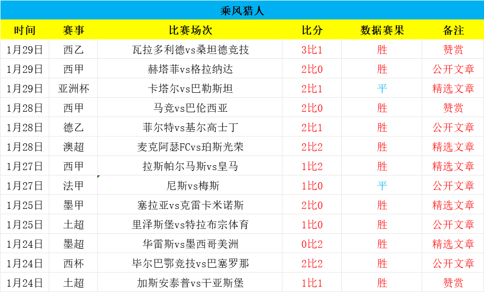 大家好,我是乘风猎人,职业数据分析师,足球经验丰富,研究足球数据数十载,期望能够乘风破浪,精准猎球制胜,欢迎朋友们长期关注!