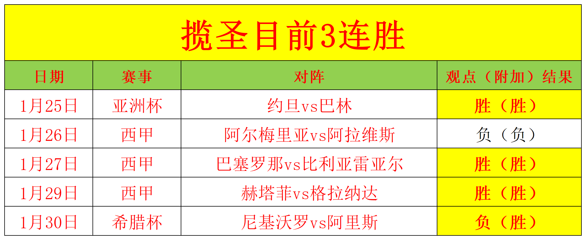 揽圣2023年10月4日至10月9日豪取18连胜。昨天的希腊杯再次拿下,近期取得5胜4的佳绩,目前3连胜,笔者状态全面恢复,今天我们再接再厉。足球比赛是追求长期的稳定,长期的关注才能得益,一时的下滑并不意味着失败,大家不要因为一时的下滑而放弃关注,笔者会努力挖掘更精准的赛事分享给大家,感谢大家的支持。