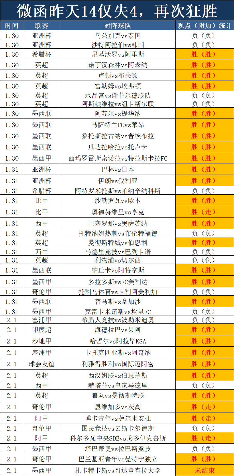1、昨天再次狂胜,14场仅失4场,昨天的情报非常准确,今天继续狂胜节奏。
