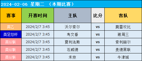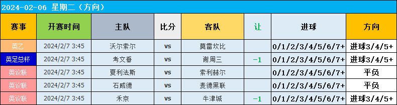今天的比赛较多,笔者挑选了部份比赛出来作为本期的参考,希望能够打出对应的高概率方向!