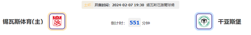 北京时间02月07日23:59,土杯十六强赛事,锡瓦斯体育vs干亚斯堡。锡瓦斯体育联赛表现中规中矩,目前在联赛暂无清晰目标,他们能否在此役重新取胜?干亚斯堡在下游压力明显,当下还未得到止颓的机会,此役作战谁是更有作为的一方?