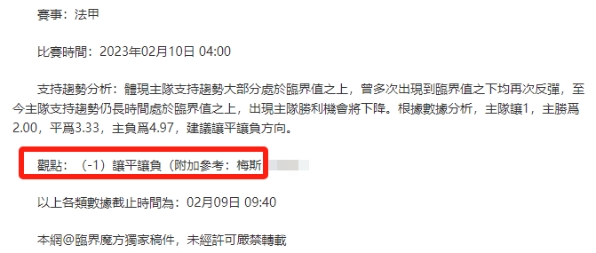 【解鎖內容為以上賽事支持趨勢預測圖展示,以及根據分析預測圖進行相對低機率方向觀點判斷。解鎖內容僅代表個人知識領域觀點,與本網站無關】