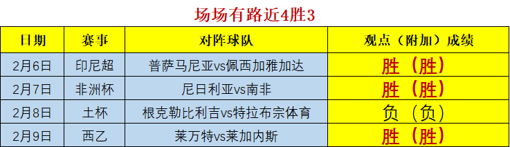 (温馨提示:观点回顾为已完场赛事的统计,并不能代表未来的观点预测结果走势,观点仅为其个人意见,与平.台无关。资讯仅供体育爱好者浏览,并不构成购.彩建议,任何人不得用于非法用途,请广大用户理性消费。)