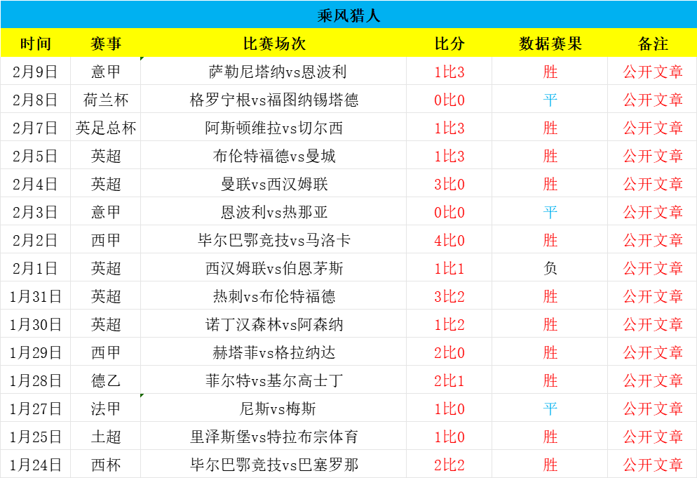 大家好,我是乘风猎人,职业数据分析师,足球经验丰富,研究足球数据数十载,期望能够乘风破浪,精准猎球制胜,欢迎朋友们长期关注!