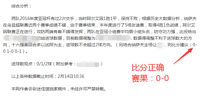 昨日亚冠杯表现出色,全北现代主场2-0轻松拿下同联赛的浦项制铁,比分方向完美打出;另外一场亚冠,纳萨夫主场0-0战平阿尔艾因,比分方向再次完美打出。