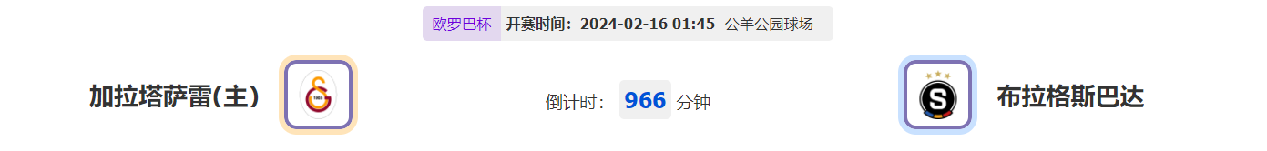 加拉塔萨雷欧冠杯小组赛6场比赛过后1胜2平3负积5分力压曼彻斯特联排名小组第3获得一个欧罗巴杯淘汰赛名额,球队如今联赛高居第一位,近期球队各项赛事已经取得8连胜,出色的进攻是其能够保持连胜的主要因素,球队连胜期间每一场比赛至少打入2粒入球,本场比赛主场作战值得期待!