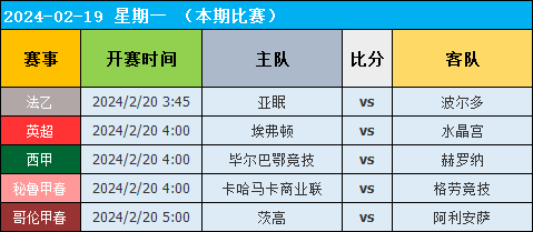 今天的比赛较多,笔者挑选了部份比赛出来作为本期的参考,希望能够打出对应的高概率方向!