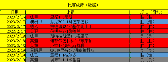 (温馨提示:观点回顾为已完场赛事的统计,并不能代表未来的观点预测结果走势,观点仅为其个人意见,与平.台无关。资讯仅供体育爱好者浏览,并不构成购.彩建议,任何人不得用于非法用途,请广大用户理性消费。)