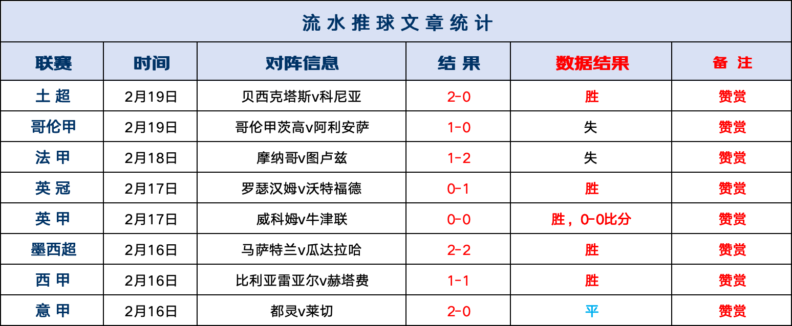 【日韩教主】独家日韩比赛一手资讯,完善的比赛模型库,解读精准独到!赞赏回顾:流水昨天赞赏1胜1失,贝西克塔斯2-0科尼亚,方向跑出。流水赞赏曾连续6周周榜第一,更是有156天总体正确率近7成(不含走)的长期稳定发挥,今天继续一起采摘果实!!!