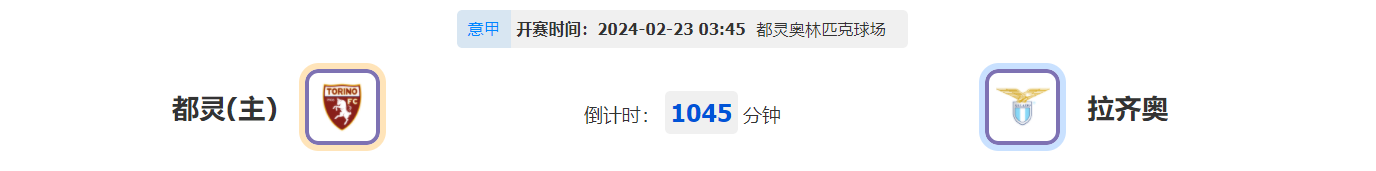看点:都灵上一场主场2-0战胜莱切,本场比赛连续主场作战能否取连胜?拉齐奥上一场主场1-2不敌博洛尼亚状态下滑,此役作客能否全身而退?