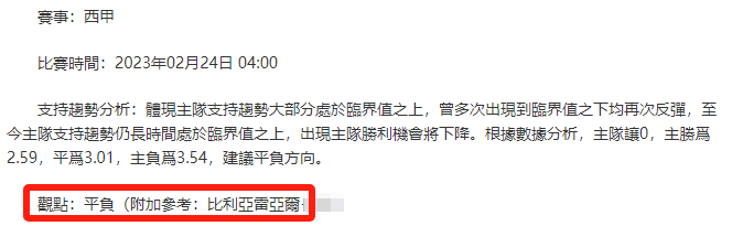 【解鎖內容為以上賽事支持趨勢預測圖展示,以及根據分析預測圖進行相對低機率方向觀點判斷。解鎖內容僅代表個人知識領域觀點,與本網站無關】